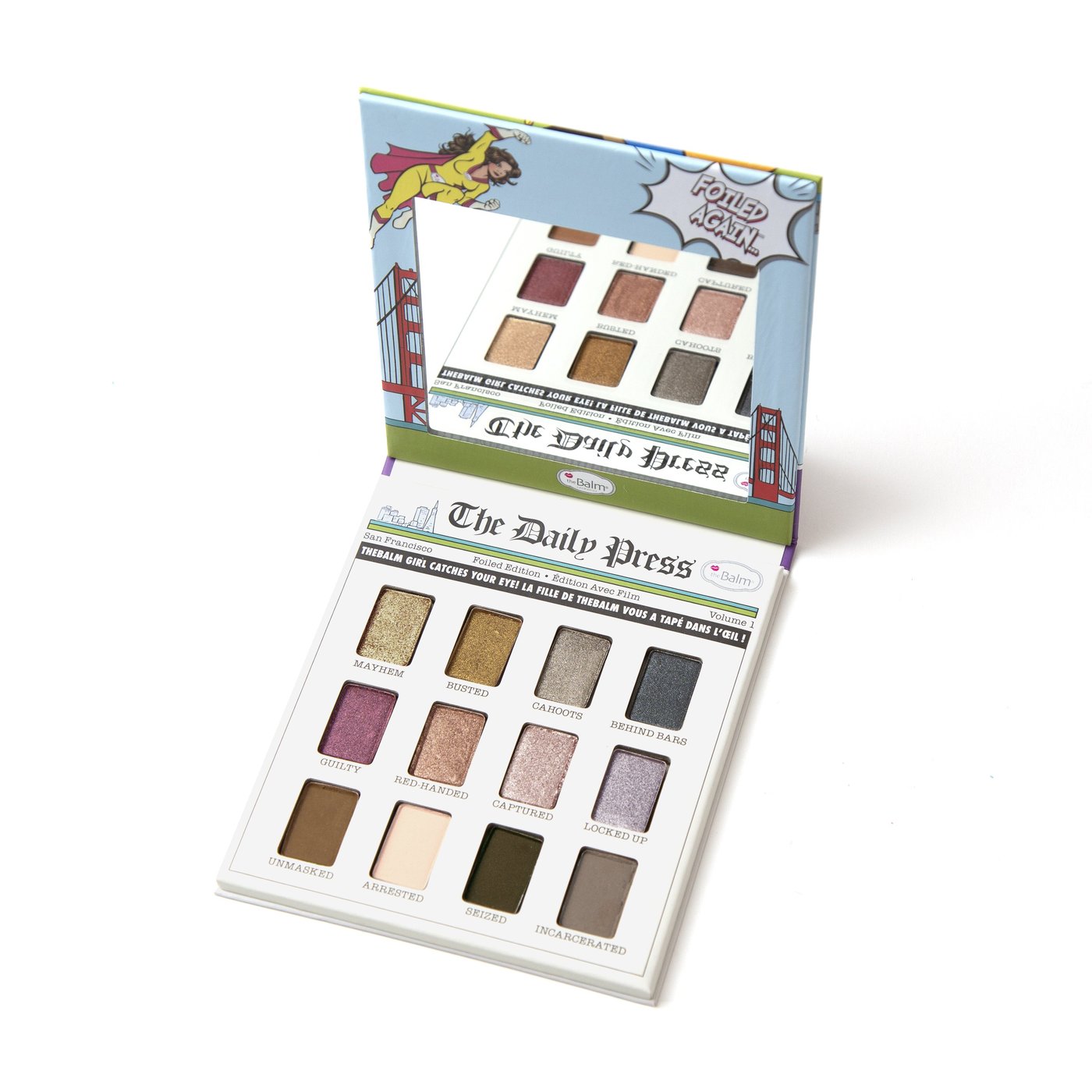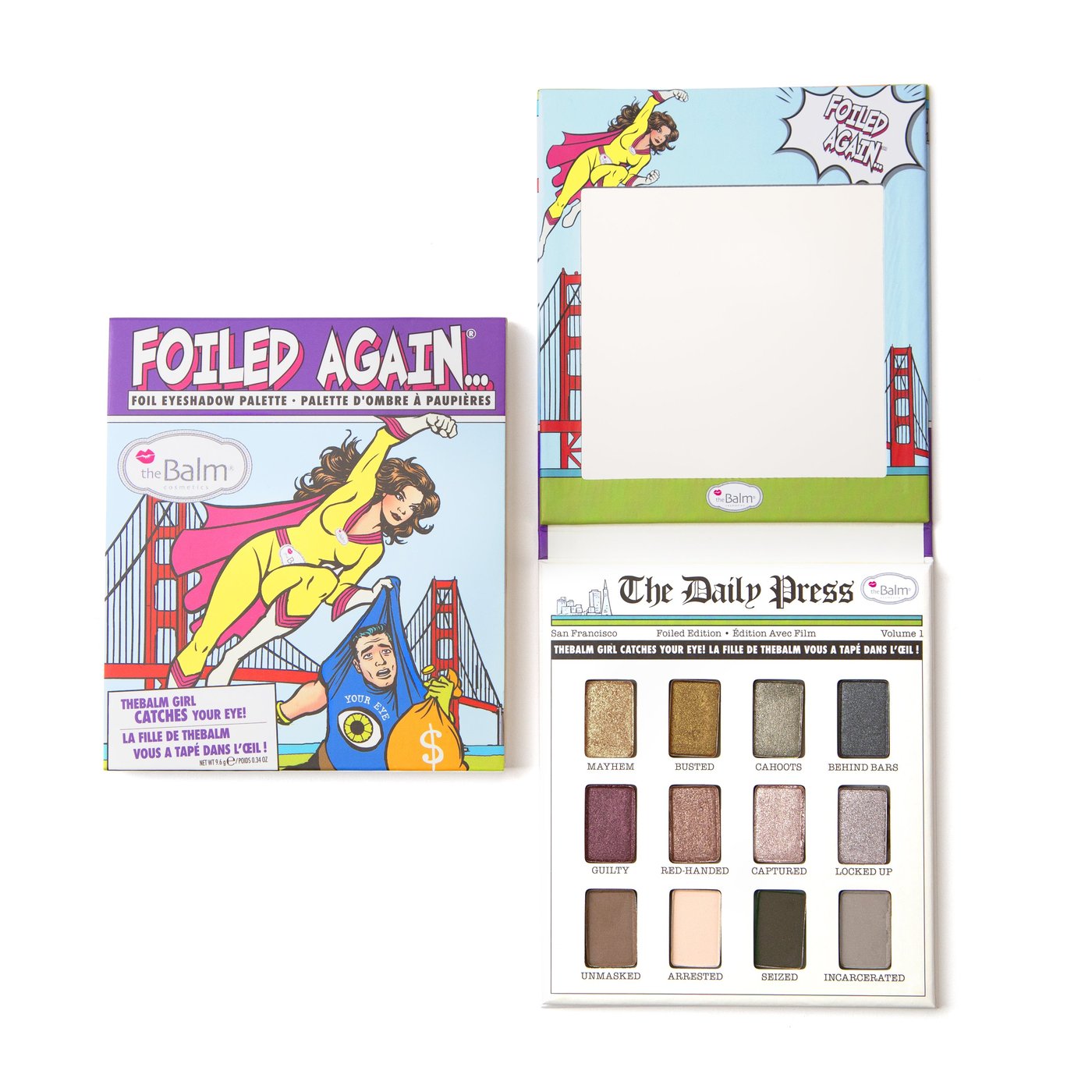Kapow och wow med vår slående ögonskuggaspalett! Foiled Again … har en samling av 12 mix-and-match skuggor, matta och skimrande nyanser som kan appliceras torra eller våta för extra färg. Dessa super(hjälte)nyanser kommer säkert att fånga någons öga, bokstavligen.